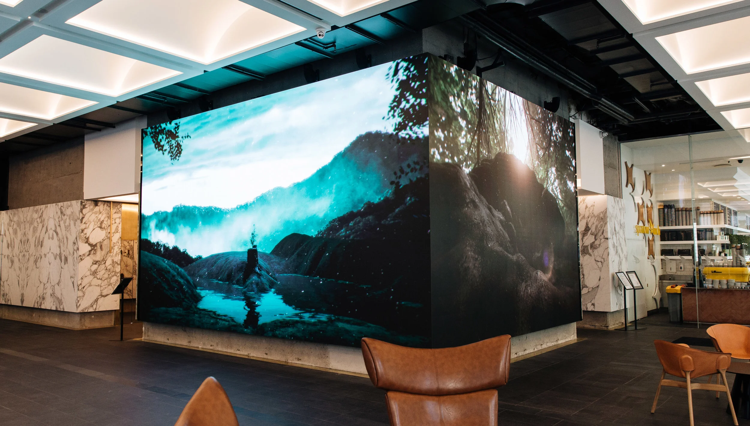 Often I’d find myself so overwhelmed by the noise, the heat, the extended delays, I would spend days away - in the forest, seeking as much of the open space and quiet as I could. The solitude brought relief from the relentless march of assembling dreams. It was during this time I had been spending in the mountains and rainforests that I had been developing a large digital art installation for one of Brisbane’s newest corporate centres. The foyer of 100 Creek St had a dual LED wall display that spanned over 7 meters on each end. I had been commissioned to design and animate rainforest-themed content for the walls. Needless to say, I had found my inspiration, and the contrast of bustling city life with the solitude of nature found its way into my art.